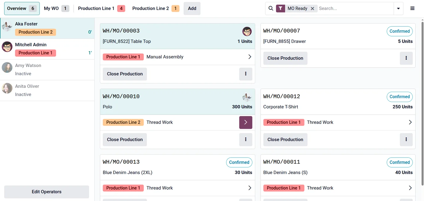 With the Odoo Shopfloor App, your workers can easily track and validate every production and quality step.