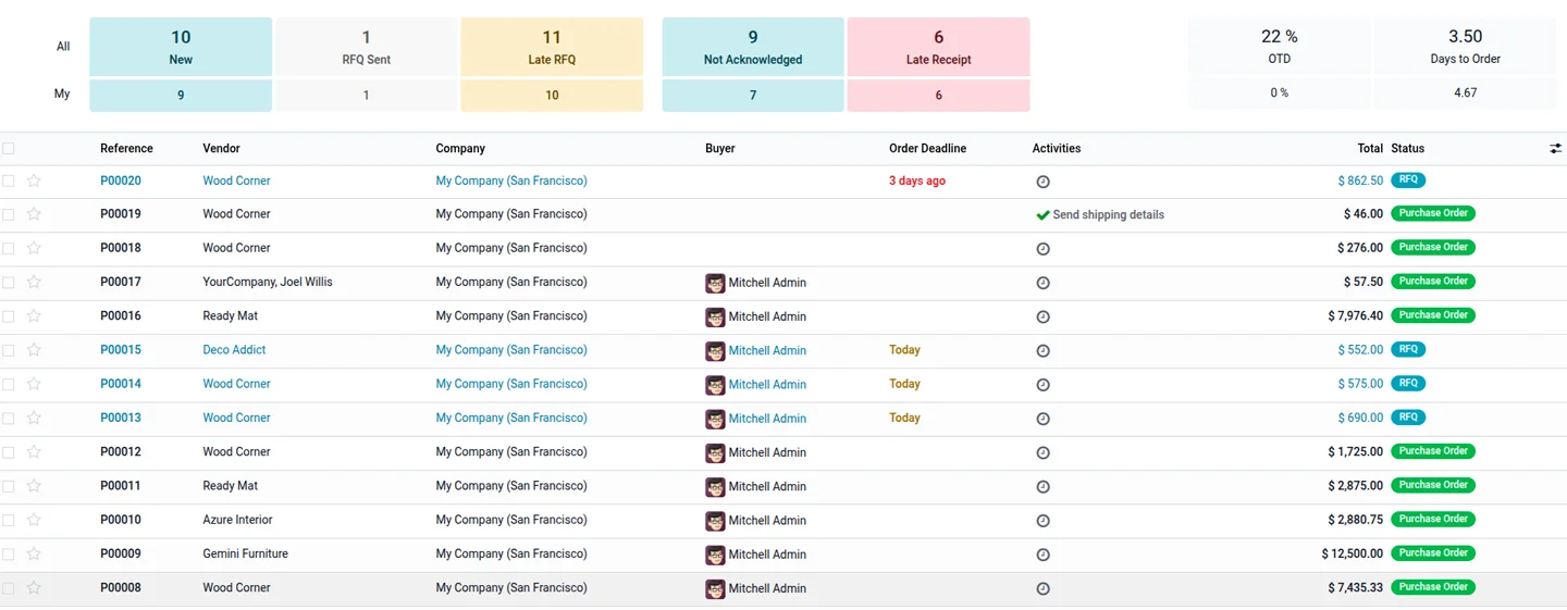 Configure routes and reordering rules to handle production, replenishment, and subcontracting tasks for you.