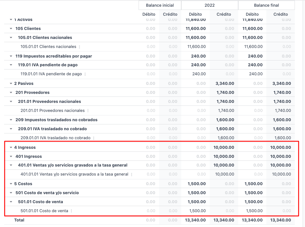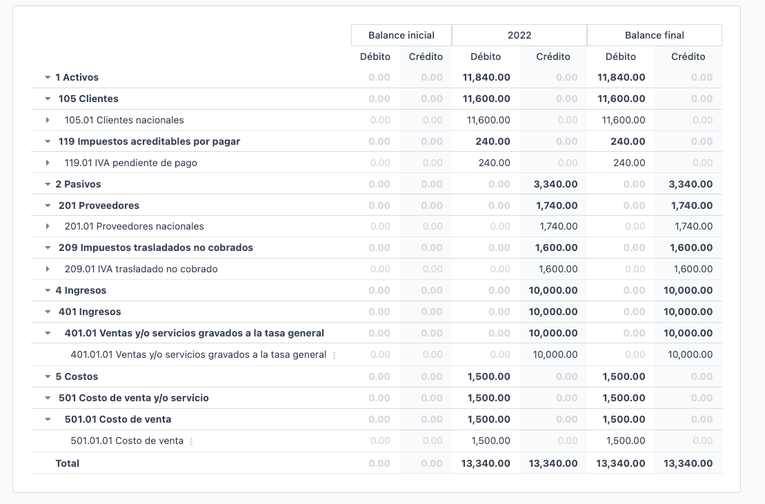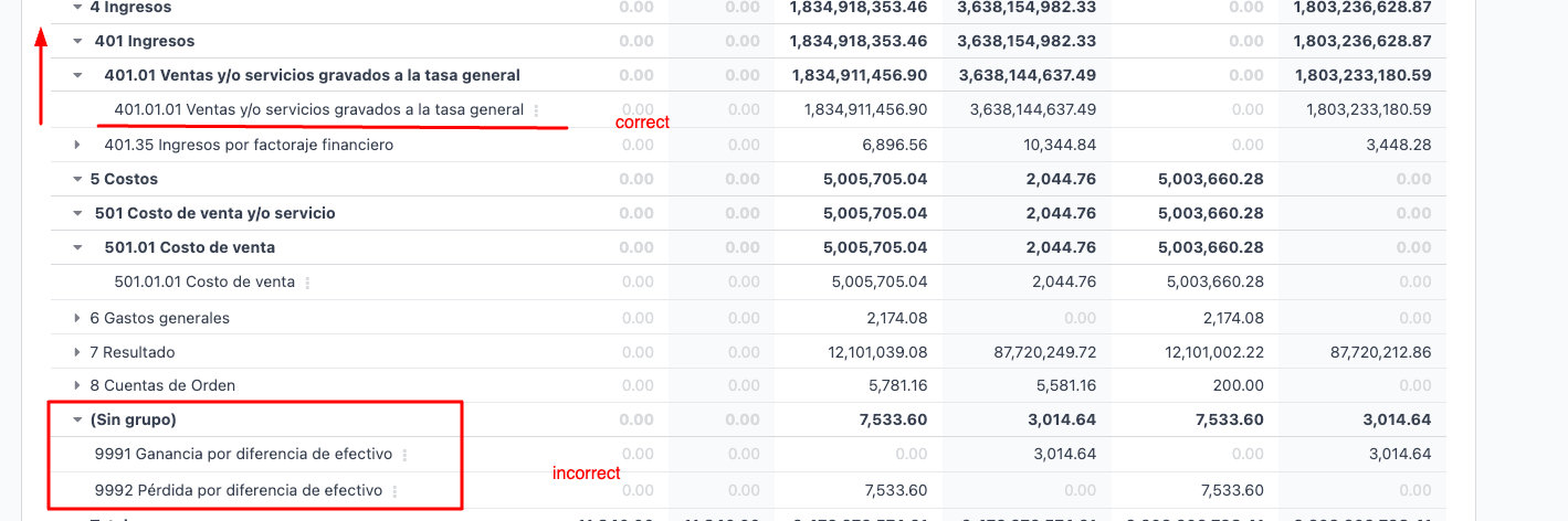 - Have the COA configured correctly in terms of the "Código Agrupador" - each account must be grouped whenever the Trial balance report is reviewd. If there are account in a section called "Sin grupo" - change must be made: