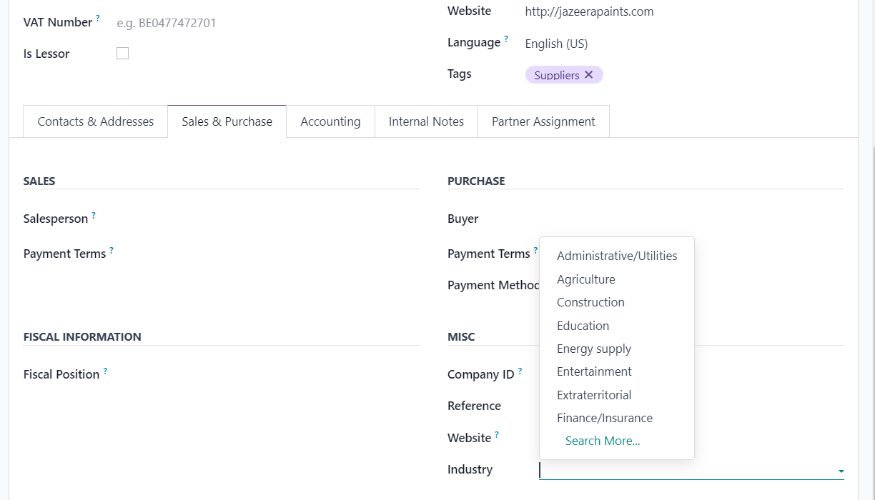 Use the Industry field available in the Sales & Purchase tab to differentiate the suppliers.